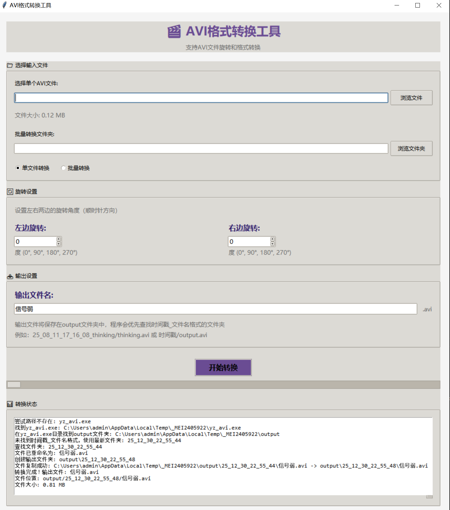打开软件后可以讲制作的avi转换成能够使用的avi,目前支持单个转换和批量转换,同时支持左右眼的旋转,只支持0、90、180、270不支持别的